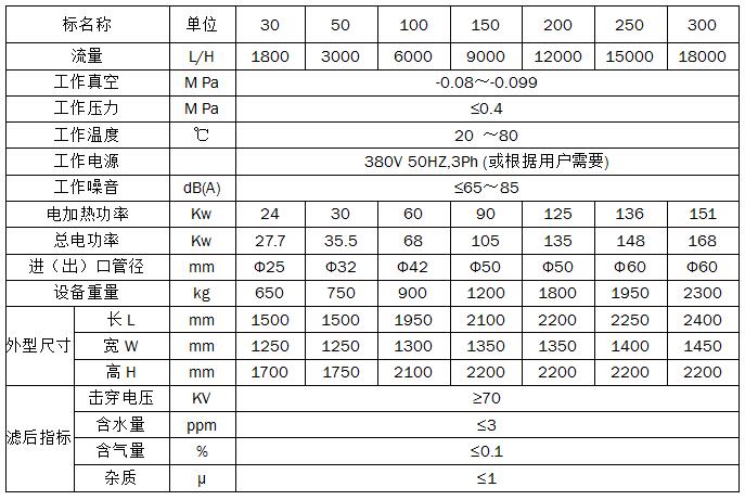 不銹鋼變壓器油高真空濾油機技術參數: