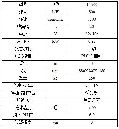 切削乳化液離心凈化機參數:
