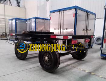 a.拖車式全封閉,移動方便,安裝汽車輪胎,橋式減震器,剎車總成,全車鋼結構焊接。
